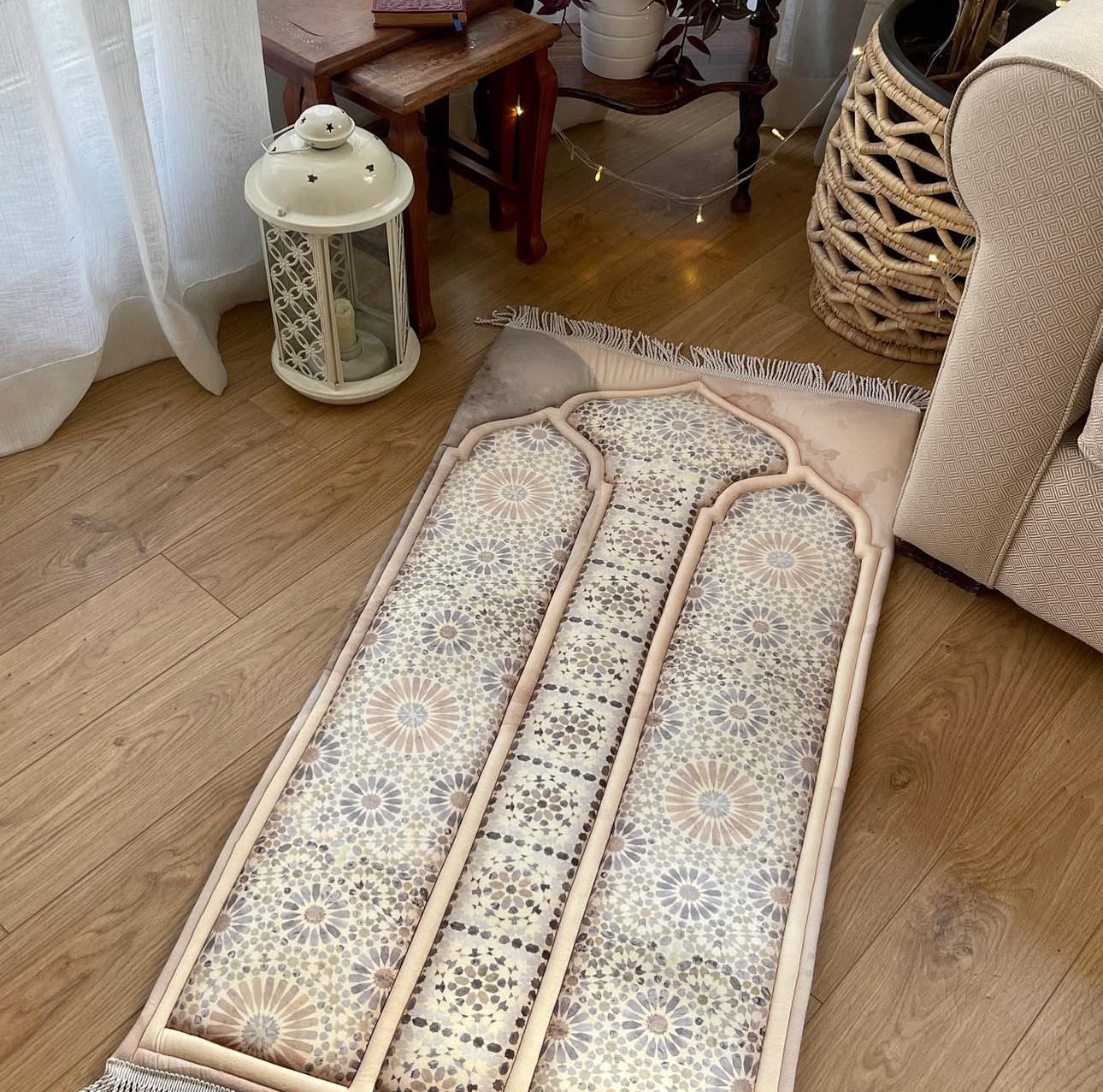 The QAMARR® Estetica prayer mat is designed for ultimate comfort. Featuring a thick, cushioned foam layer and an intricate engraved design, it offers both support and elegance. A perfect choice for daily prayers or as a thoughtful gift that blends luxury with spirituality.