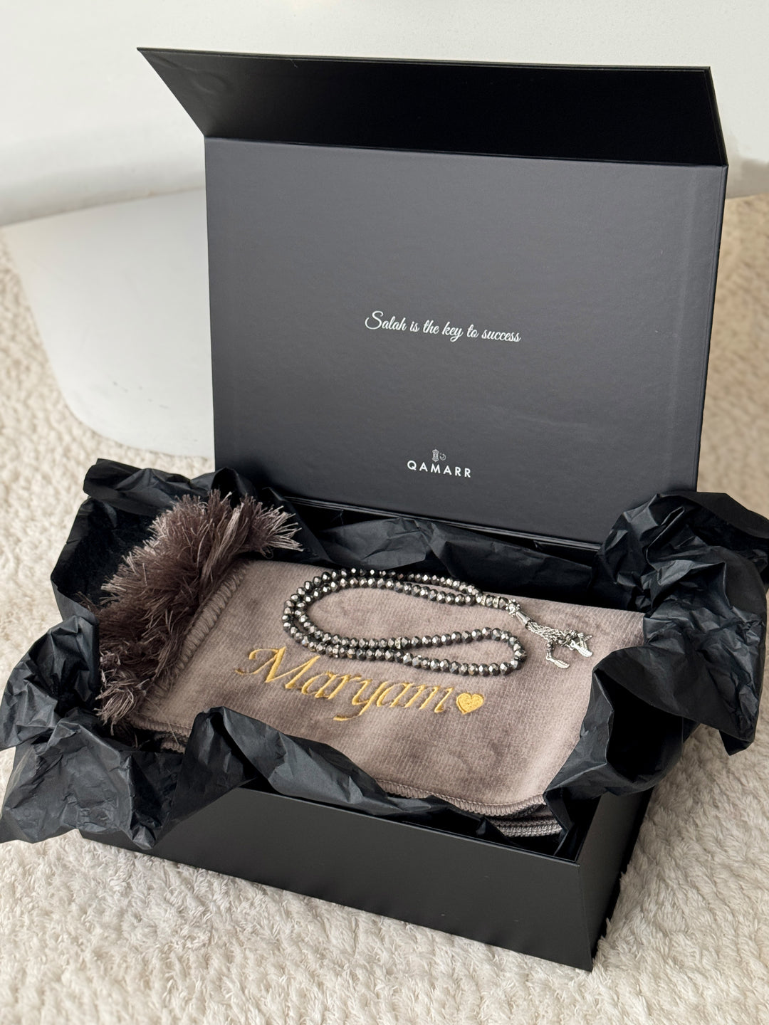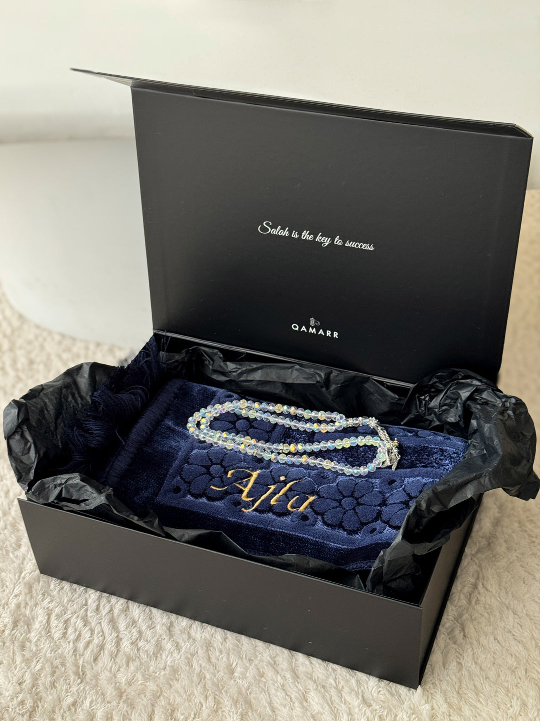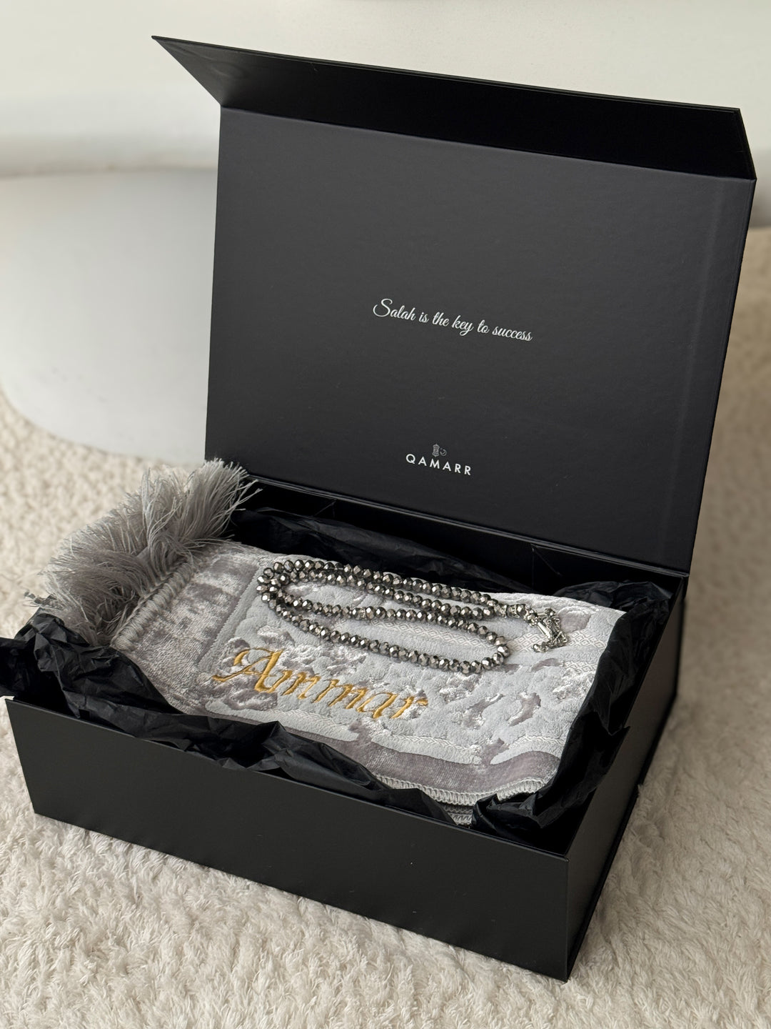 Each prayer mat is made from thick, luxurious materials and can be customized with your name and a symbol. With a focus on quality, every mat is beautifully packaged in our signature QAMARR box, making it an ideal gift for any occasion.