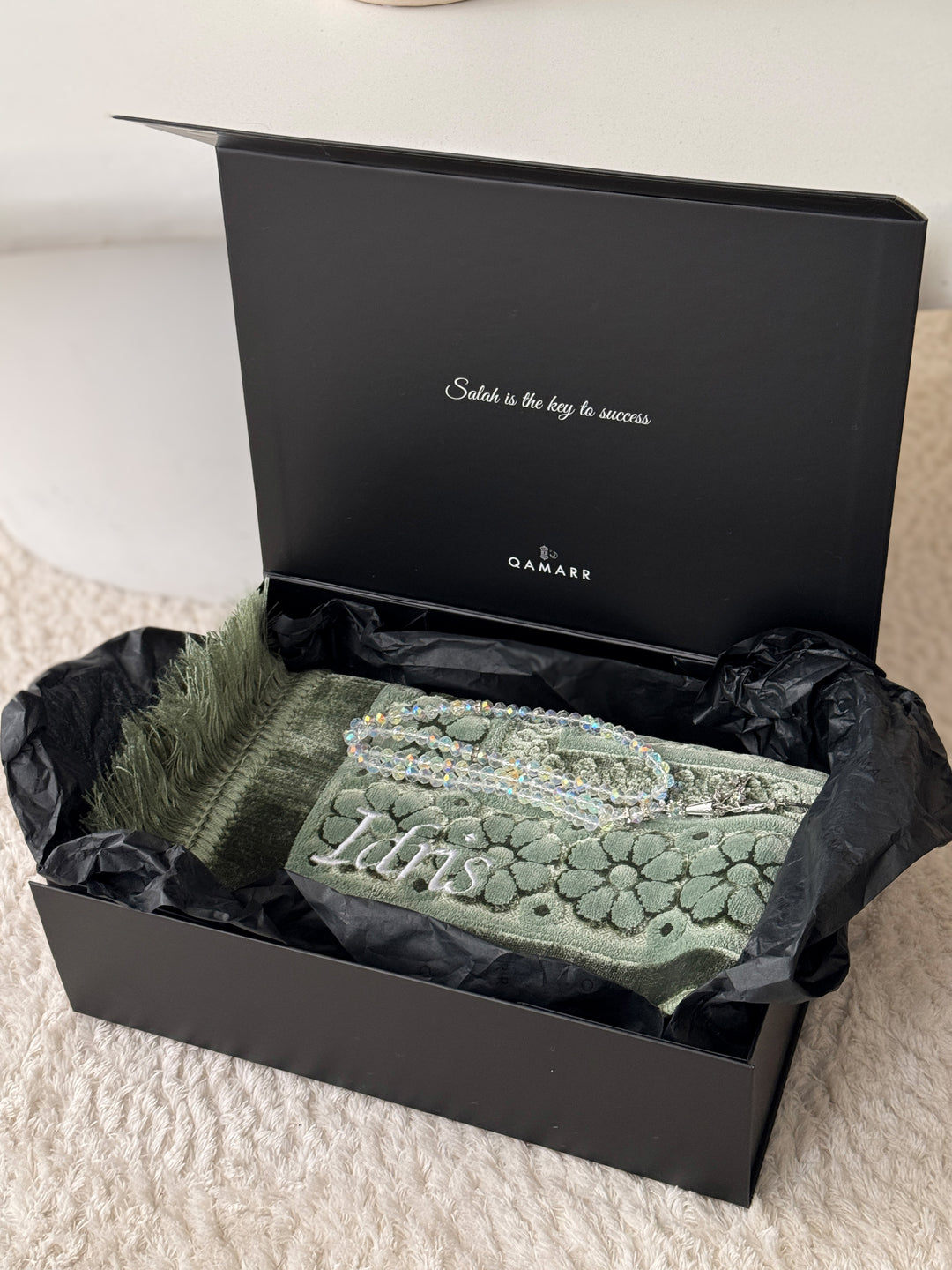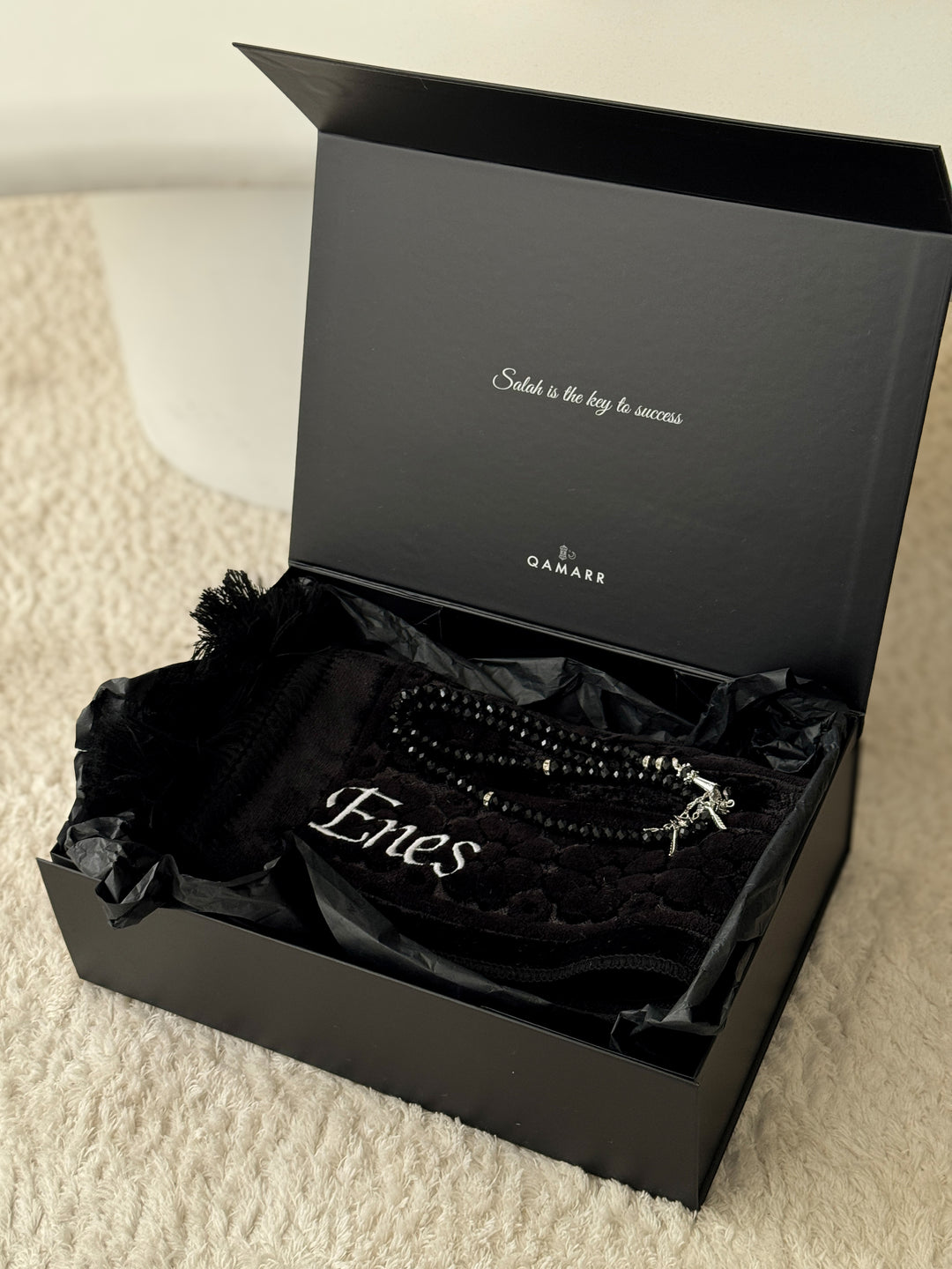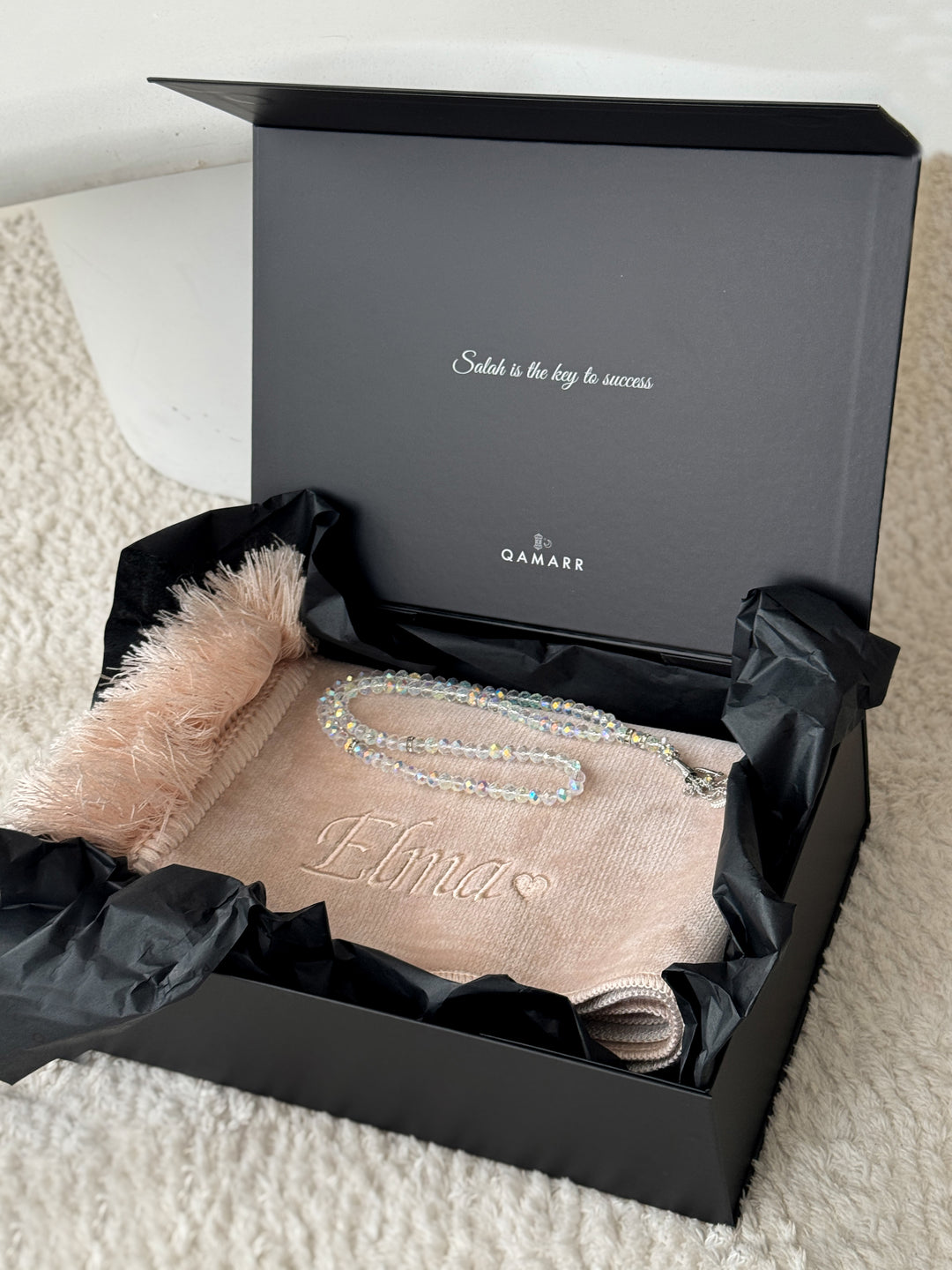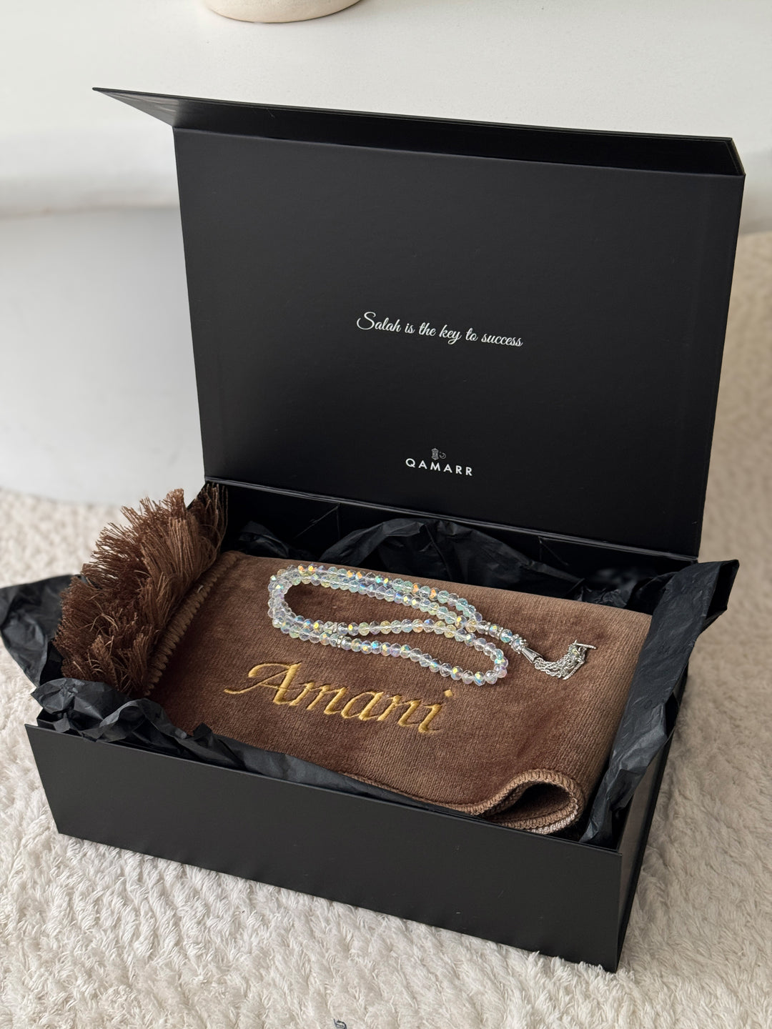 Each prayer mat is made from thick, luxurious materials and can be customized with your name and a symbol. With a focus on quality, every mat is beautifully packaged in our signature QAMARR box, making it an ideal gift for any occasion.